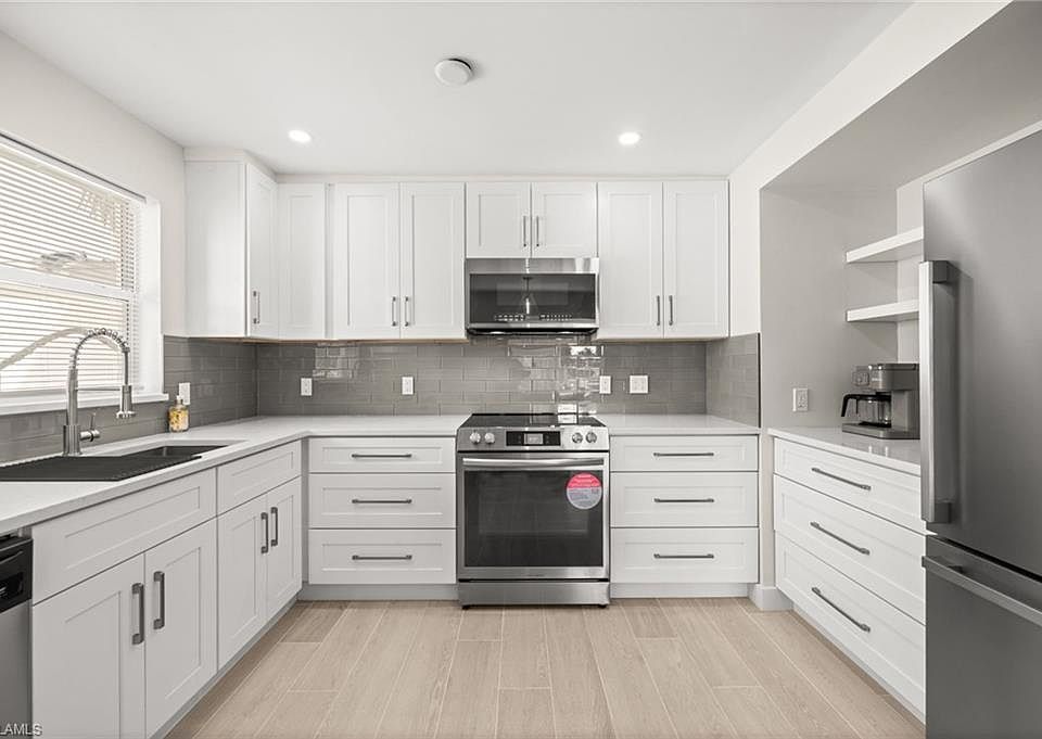 Fully renovated with refined contemporary elegance, this exceptional 2 bedroom and 2 bath spacious and bright residence offers a sophisticated Naples lifestyle in a prime location. Thoughtfully redesigned interiors showcase a sleek modern kitchen with quartz countertops, stainless steel appliances, a generous island, and high-end finishes throughout, creating a seamless blend of style and functionality. Experience the best of coastal living with biking distance to 5th Avenue South and the beach, and walking distance to Naples Bay Resort. Perfectly positioned next to the new JW Marriott Hotel and Aura Metropolitan, and moments from the Bayshore Art District, Naples Botanical Garden, Rebecca’s Wine, and Celebration Park, this location places you at the center of Naples’ most vibrant and evolving destination. Residents enjoy resort-style amenities including a heated pool, pickleball and tennis courts, BBQ and picnic areas, and a community park. All utilities are included in the fees except electricity, offering exceptional convenience and value. An attractive rental policy enhances both flexibility and investment appeal. Ideal as a primary residence, luxury seasonal retreat, or income-producing property in one of Naples’ most desirable neighborhoods. Free One Year American Home Shield Home Warranty is offered to the Buyer at closing.