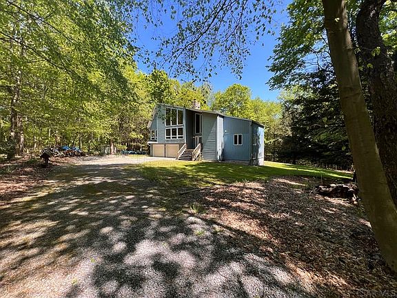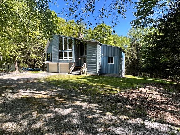 PRIVACY! Hard to find 5.6 mostly wooded acres! Quality contractor built (for himself) Home. Huge living room with soaring ceilings and stone fireplace with insert. Lower level family room with full bath and walk out to yard. Large deck off kitchen and dining rooms. 4 spacious bedrooms including private master suite. Oversized heated 2 car garage with workshop area. 5 Zoned Propane Hot Water Heat. MUCH MORE TAKE A LOOK!!