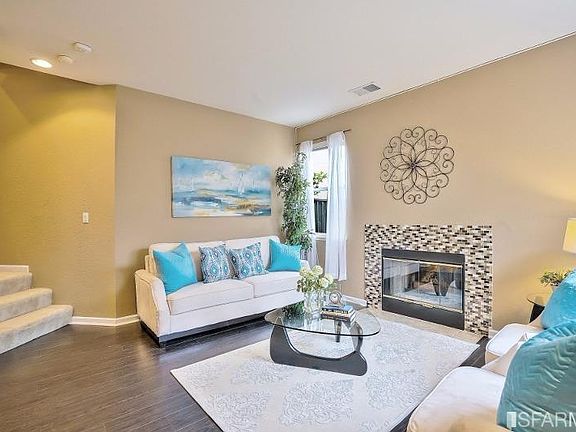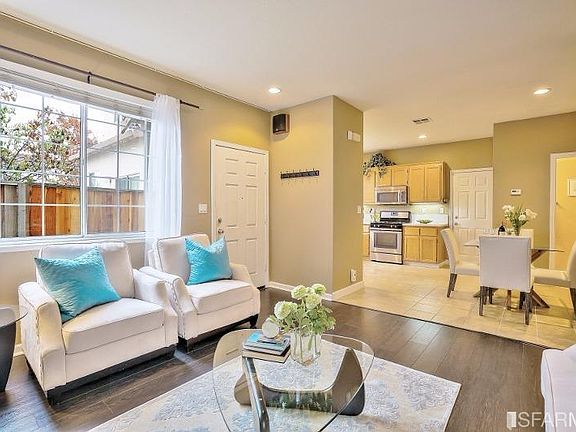 Beautiful, well-maintained home located in the desirable Heron Bay, walkable to the Bay Trail. Living room features bright windows, elegant laminate floor, and a welcoming fireplace. The dining area flows into a cheerful, recently updated kitchen with quartz countertops, plentiful cabinet space, and stainless steel appliances. The gracious floor plan is perfect for cozy living and entertaining. 3 bright and spacious bedrooms on the upper level. Large master suite boasts a roomy walk-in closet and an en-suite bathroom with a double vanity. The property includes a 2-car side-by-side garage with ample room for storage and an outdoor patio. Common amenities include playgrounds and a basketball court. Near BART, Hwy 880, shopping, golf.