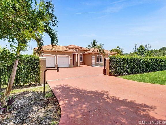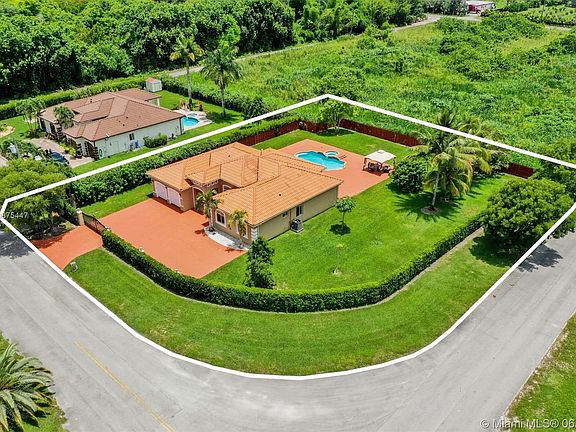 Gated Redland estate on over 1/2 acre! Step into this immaculate home with sweeping 12 1/2 ft ceilings appointed with crown molding throughout living area. Generous size bedrooms with split bedroom floor plan. Double doors guide you into the master suite with access to patio, spacious WIC, and sizable bath with water closet. Inviting formal dining and living area allows ample entertaining space. Kitchen with newer stainless steel appliances flows into family room and creates the ideal living space. Screened patio leads to pool with jacuzzi. Private backyard on corner lot with only one side neighbor. Lots of fruit trees and side gate for easy access for your boat or RV. AC and water heater recently replaced. Just 30 minutes to the Keys. Florida living at it's finest. Schedule your showing!