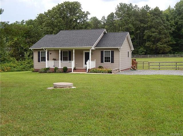 Immaculate Ranch home with huge deck and country front porch on 2+ acres. Main portion of land is cleared with a large fenced back yard and Very private with tree line surrounding the property makes country living a peaceful reality. Low maintenance vinyl siding, energy efficient windows and encapsulated crawl space. Two exterior sheds and large drive with plenty of parking. Inside is neat as a pin. Good size family room with ceiling fan and eat in kitchen with deck access. Master bedroom with full en suite and 2 additional bedrooms with hall bath access. A perfect setting for a perfectly adorable home!