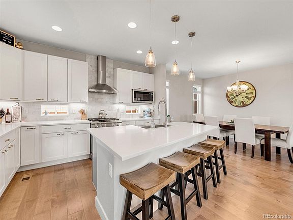 With no detail overlooked, this stunning home is loaded w/ high-end upgrades, breathtaking mountain views & is situated on a premier lot in the highly desirable Gardens at Table Mountain neighborhood. An open floor plan & an abundance of natural light bathes the interior through large windows & creates a warm, inviting ambiance. The chef's kitchen is a true masterpiece boasting quartz counters, marble backsplash, high-end appliances, a large island w/ barstool seating & is lighted by designer pendant lights. Whether it's a formal dinner party or an intimate gathering of friends & family, the adjacent formal dining room is the perfect place to gather & entertain guests. The family room offers a perfect blend of style, comfort, & functionality where you can enjoy mountain views from every window. The primary suite is the ultimate retreat, complete w/ a luxurious primary bath featuring dual vanities w/ quartz counter-tops, a spa-like walk-in shower, & a perfectly designed walk-in closet w/ custom-built storage. Unwind on the private deck overlooking the backyard, small neighborhood park & more mountain views. The upstairs loft is a versatile space that offers endless possibilities to create the perfect space for your unique needs & the south facing deck is the perfect spot to relax, read a book, or enjoy your morning coffee. Two spacious & bright bedrooms are served w/ a well appointed jack & jill bathroom for added convenience. The basement offers even more space to enjoy, including a conforming bedroom, large full bathroom & additional flex space. Siding to a small neighborhood park, the wonderfully landscaped backyard has been painstakingly maintained & includes an all-new brick paver patio that leads to a gas firepit & seating area, offering a perfect outdoor oasis for relaxing & entertaining. With quick & easy access to the mountains, walking trails, & neighborhood pool & parks, this home provides the perfect balance of tranquility & accessibility.
