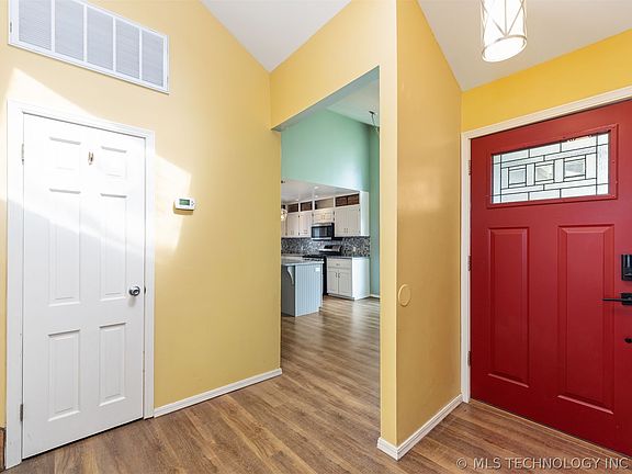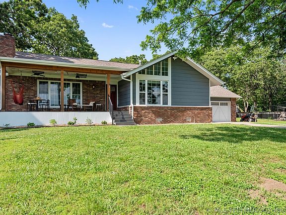 Nestled on a spacious country property 15 mins south of Bixby and 35 mins to downtown Tulsa, this contemporary home offers an idyllic retreat backing up to a serene wooded area. The residence features two well-appointed kitchen areas equipped with both electric and propane options, each boasting elegant granite countertops. An inviting pool with a surrounding deck and a stocked pond enhance the outdoor living experience, perfect for relaxation and recreation. Inside, the expansive living spaces include a luxurious jacuzzi tub, providing ultimate comfort. The property is accessed via a gated drive, ensuring privacy and security. Friendly neighbors and the blend of indoor and outdoor living spaces make this home an ideal sanctuary.