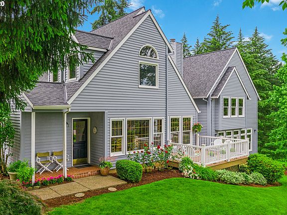 Beautiful custom built home on 5 acres. Gorgeous, peaceful private property offers territorial views, night lights, and view of Mt Hood. Wood/beamed ceiling in the Dining Rm & vaulted ceilings in most rooms make this house feel spacious. Remodeled Master Bath has soaking tub with view of the treetops and a balcony. Enjoy the wall of windows out to the view in the family rm. More like a sunroom, the kitchen features 4 skylights, beamed vaulted ceiling & glass doors to patio. A beautiful retreat.