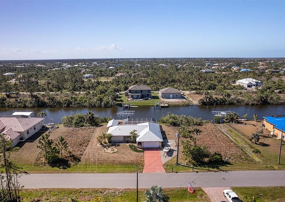 This three bedroom two bath, Gulf Access, Pool home is located in the highly desirable waterfront community of South Gulf Cove! This relaxed voluntary HOA community is made up of man-made canal systems some with sailboat water access, that lead out to the Gulf of Mexico through a lock system. Within a fifteen minute drive, you can find breathtaking Gulf Coast beaches in the area, beautiful golf courses, local restaurants, schools, shopping and more. This split floor plan provides plenty of privacy for you and your family or guests with two separate living areas. A large family room is surrounded by bright natural lighting and views to the pool and canal. The kitchen is located in the center of the home with a pass through window to the lanai and large peninsula island for entertaining. A den is found on the other side of the kitchen with sliding glass doors leading to the lanai. Two guest bedrooms share a guest bathroom with walk-in shower. The spacious master bedroom also features a master ensuite with walk-in shower. The lanai features a covered area perfect for entertaining and a large pool with spa. A private dock, boat lift and shed can be found out back but have received damages from Hurricane Ian. You are just a short boat ride out to the lock system and headed to the Charlotte Harbor / Gulf of Mexico. Metal Roof 2010. Be sure to call for your own private showing TODAY!