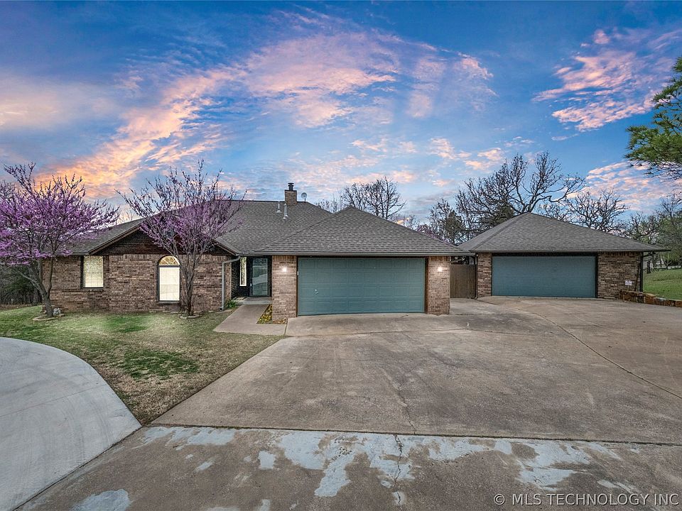 Come live the Lake Life on this peaceful oasis near Crystal Bay Marina! This custom built home has the perfect split floor-plan for families or to entertain guests. Vaulted living room with a fireplace is the center of the home. Spacious kitchen with granite and tons of cabinets. 4 bedrooms, or 3 with an office/hobby room all with large closets. The large master bedroom has a private sitting area, en-suite, and access to the large back deck complete with a gazebo. Its the perfect place to sit with your morning coffee, bird watch, or just relax overlooking your beautiful almost 1 acre lot. Additional detached 2 car garage has AC to double as a workshop, with a safe room inside of it. A circular drive and an additional parking pad was poured to move those water toys around with ease. Property is located on a quiet dead end road in this true lake community thats less than a 10 minute drive to Skiatook!