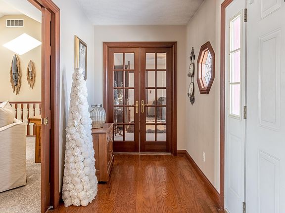 This spectacular all brick home w/ a fully finished walk-out basement on 1.316 Acres will make you do a double take! Walk in the front foyer & open the solid cherry pocket doors to the living room w/ vaulted ceiling & skylight and imagine your cozy nights curled in front of the fireplace, OR opening the french doors to enjoy the NEW deck (w/waterfall, coy pond, & patio underneath!) The living room opens into your dining area & kitchen w/ SS appliances. The master suite features sliding doors w/ direct access to the deck and a jaw dropping, newly remodeled private bathroom w/ a deep jetted soaking tub, separate tiled shower, private toilet room, linen closet & HUGE walk-in closet. The 1st floor also has a study that could be a 4th BR, half bath w/ laundry area, & a dry bar/rec room. Downsta