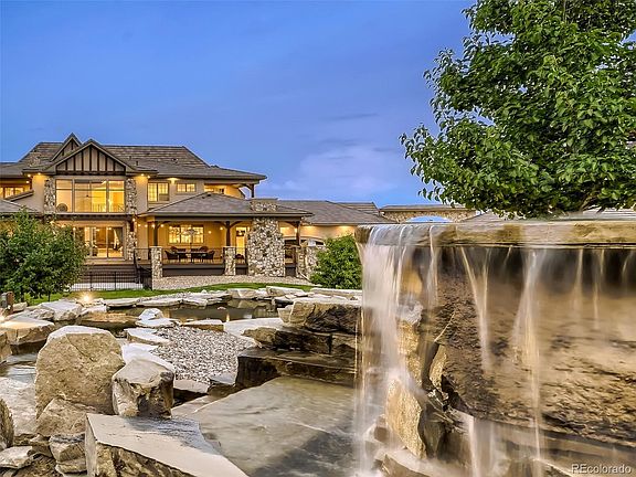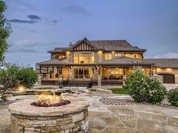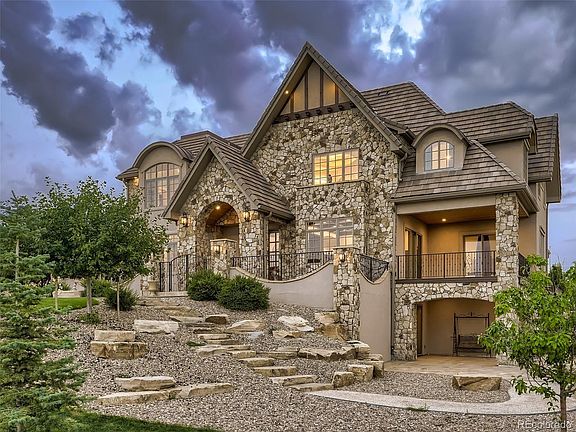 Meticulously Crafted, Elegant Estate Home in the luxury home community of Spruce Meadows. Situated on 2.71 acres, a dramatic driveway brings you to the stunning courtyard entrance. Attention to detail and seamless flow is realized upon the moment of entry as a grand curved staircase graces the foyer. MAIN LEVEL showcases: Formal Dining Room with stunning coffered ceiling, wainscoting detail, fully equipped Butlers Pantry; Study with classic wood accents, private covered terrace; State-of-the Art Kitchen perfect for professional and aspiring chefs, featuring massive center island, Thermador appliances, built in 60" refrigerator/freezer, two dishwashers, gas range, wall oven with warming drawer; Adjacent Breakfast Nook opens to an Outdoor Kitchen, Covered Deck with fireplace; Second Office next to kitchen; Great Room has two-story ceiling, stone fireplace, glass doors opening to outdoor area creating a seamless indoor-outdoor experience; Main Level Guest Suite; Additional Powder Bath; Huge Mud-Laundry Room with dog shower. UPPER LEVEL: Primary Retreat has private deck, sweeping mtn views, sitting area, luxurious spa bath, two walk-in closets; Two Additional Bedroom Suites; Loft opening to deck with more mtn views.; Second Laundry Room. WALK-OUT LOWER LEVEL: Rec Room with two outdoor patios; Full Bar including commercial bar fridge, dual tap kegerator; Wine Cellar with space to stylishly display a collection to impress the finest wine connoisseur; Huge Exercise room has Attached Bath with steam shower and sauna; Additional Guest suite; Powder Bath; Finished Storage Room. Elevator allows for easy access to every level. OUTDOORS: Professionally landscaped with multiple patios and decks provide abundant outdoor options for entertaining or relaxing. Oversize Garages provide space for 7 cars, toys and more. Exuding style and sophistication, this home is ideally situated in one of the most sought-after neighborhoods in the Metro area.