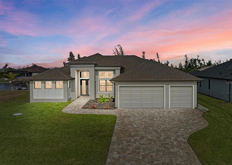 SIGNIFICANT PRICE IMPROVEMENT! Welcome to your fully-furnished waterfront retreat! This custom-built home (completed in 2023) on the Aqua waterway with a concrete sea wall and a captains walk offers DIRECT access to the Gulf of Mexico, with optional HOA, and is being sold turnkey furnished. Immerse yourself in luxury with 3 bedrooms, 2 baths, and upscale amenities. Imagine seeing stingrays and Tarpon in your backyard! Experience spa-like indulgence with a grand “drive-through” shower in the primary suite, a dedicated office, and corner sliders seamlessly connecting indoor and outdoor living. Enjoy efficiency and peace of mind with insulated garage doors, whole-home spray foam insulation, and pre-wiring for a generator. The extended pool, upgraded hot tub, and pebble tec base offer a resort-like experience. Security is a top priority with a whole-home security system. Boating enthusiasts will appreciate the never-been-used boat dock and lift (that can hold up to 10,000 lbs) with a Bimini top.The dock has electricity and water, making boating days a breeze! Inside, luxury plank tile, upgraded lighting, and an extended epoxied garage (5 feet longer) with easy access attic storage await. You can actually pull your large vehicle into this garage! The extended pool area and lanai feature beautiful pavers and SPF-protected pool screens. In addition, the lanai is pre-plumbed for an outdoor kitchen. For a comprehensive list of upgraded features, please ask your realtor to provide the detailed features sheet – there are far too many to mention here. Also the coveted community of South Gulf Cove is brimming with activities including golf cart parades and other neighborhood events. This turnkey furnished waterfront paradise is ready to welcome you home – seize the opportunity! Bedroom Closet Type: Walk-in Closet (Primary Bedroom).