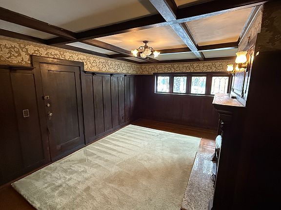 Nice main room with historic moldings, details, and cool leaded glass windows and light fixtures.