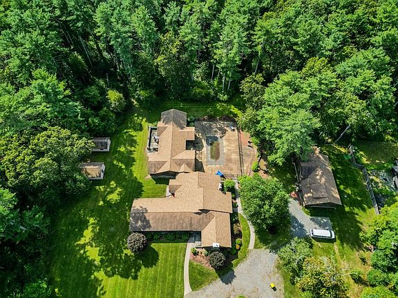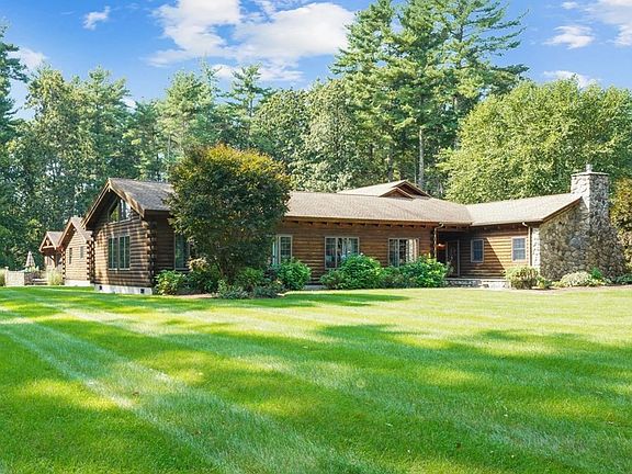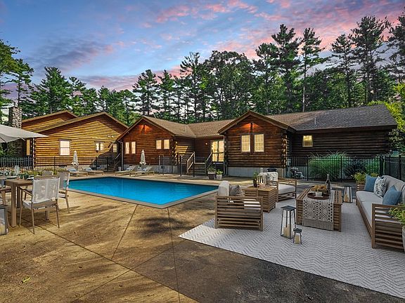 Welcome to "The Compound" at 153 & 155 Pine Street, a unique dual-residence estate sprawled across 4.23 private acres. "The Main House", a 2011 custom-built marvel, offers 6,011 sq ft of one-level living. It features exquisite oak flooring, 4 heating/cooling zones, a grand 1,500+ sq ft great room, and a ready-to-finish basement. This home boasts four bedrooms and three full bathrooms, complemented by a 10-bedroom septic system. An in-ground pool, with nine feet of depth and surrounded by a fenced lounging area, lies between the homes, perfect for summer relaxation. "The Guest House" impresses with 1,264 sq ft of living space, including vaulted ceilings, two bedrooms, a heated sunroom, 2 heating/cooling zones, and a deck overlooking lush foliage. With over 11,000 sq ft of combined space, including basements, "The Compound" is a testament to luxury, privacy, and architectural elegance, ready for its next chapter. Photos have been virtually staged to highlight the property's allure.