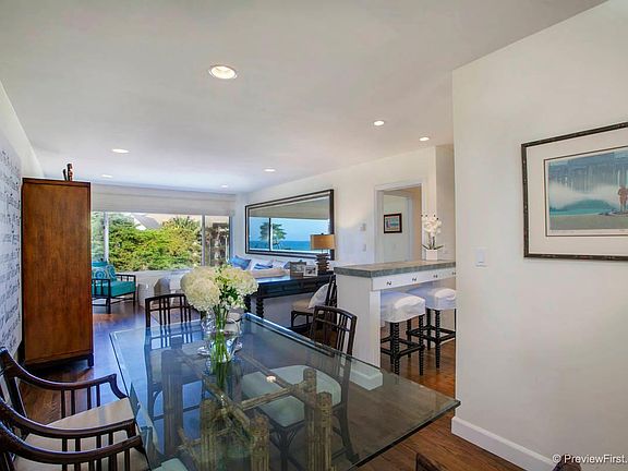 Gorgeous Ocean Views from this beautifully remodeled 1 bedroom, 1 bathroom upstairs furnished condo located in the heart of the Del Mar Village across from the beach and park. Beautiful hardwood floors, stone work, furnishings, appliances and Amazing Ocean Views make this the perfect seaside place to live! Beach, park, shopping, dining and more right there. A designated parking spot is provided on Ocean behind a garage. Torrey Pines Reserve is only minutes away and there is also easy freeway access. Owner pays for water, renter is responsible for electric and cable. No smoking allowed. One small dog is permitted (up to 25 pounds). One designated parking spot on the premises. Owner prefers a year lease but will consider shorter terms. Condo is furnished.