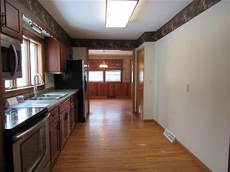 Simply spacious 3 bedroom home is neat & tidy, neutral decor, newer carpets, oak hardwood floors with large living room and separate open dining area off kitchen with door to back deck. Main floor master and updated bath. Forced air furnace with central air. Stainless steel appliances Det garage with extra car port cover. This home is an easy 2 block walk to park and stores. Enjoy where you live. Above Ground SqFt: 1,656 Below Ground SqFt: 866 Main Floor SqFt: 866 Room Name Lvl L W Room Remarks Kitchen Main wood cabinets, room for small table Dining Room Main open to kitchen, door to back deck Living Room Main oak hardwoods, great size Bath Main tub/shower nicely updated Master Bedroom Main good size bedroom Bedroom 2 2nd Floor good sized closet with built ins Bedroom 3 2nd Floor good sized closet with built ins Laundry Room Basement Storage Room Basement Bath Basement stool and laundry sink