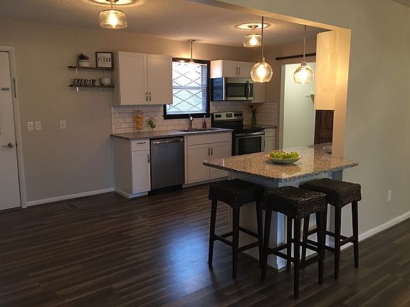Completely remodeled 3 bedroom home with open floor plan. New Roof. New modern kitchen including cabinets, granite counter tops, subway tile backsplash, lighting & appliances. A new barn door separates the kitchen from the laundry room which offers new tile floor & wallpaper. New hardwood like floors & new baseboards throughout the house. New bathroom with beautiful tile shower tub & rain faucet. Modern design with new vessel sinks & wall faucets. New wainescoting, wallpaper and tile floor is a upscale touch to the room. New plumbing & electrical in areas to complete this beautiful rehab. Sunroom offers several windows & new tile floor that leads to a open deck. New paint & new ceiling fans throughout the house. Doors are updated with new hardware throughout the house. The outside updates are new front door, wood columns, porch paint, lattice & deck stain. Also offering three storage areas, two are attached to the house and one a shed. Has a boat storage as well. Fenced in backyard.