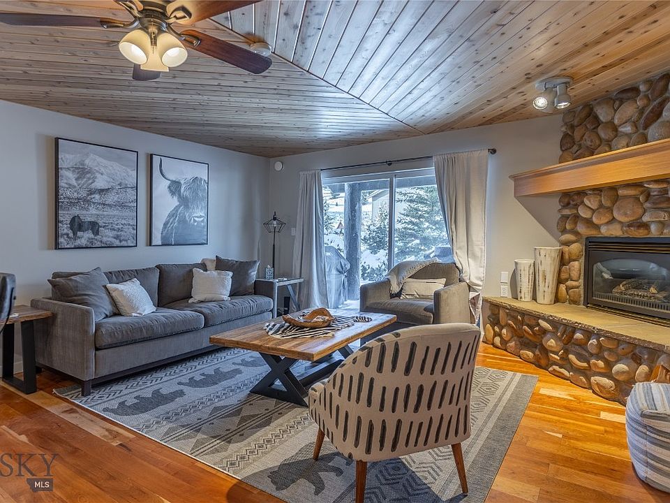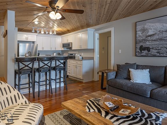 Sold turn-key and completely move-in ready, this furnished condo has convenient access to Big Sky Town Center and all of its amenities. Fully remodeled in 2021, this 2 bedroom/2 bath condo has all new furniture and appliances, along with modern updates throughout. Enjoy soaking in the hot tub on your private deck after a long day on the ski slopes, or walk to summer events and trailheads nearby. This ground floor end-unit provides easy entry and would make a great rental unit.