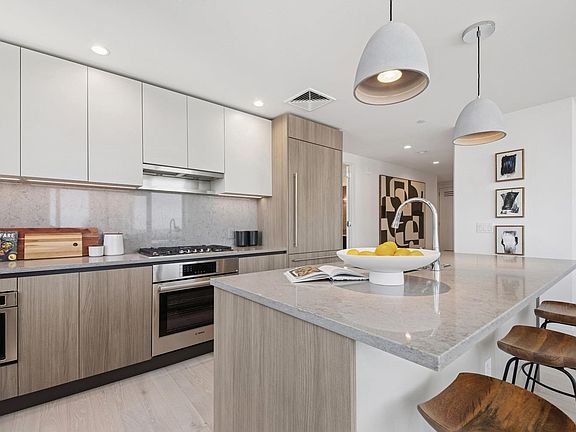 Experience elevated urban living in Residence 1203, nestled in Jersey City's vibrant Powerhouse Arts District. This thoughtfully designed 1199 sq. ft. corner, two-bedroom, two-bathroom home blends modern form with refined function. Expansive 7ft. northeast-facing windows flood the space with natural light, enhancing the sleek, minimalist design and white oak flooring. This home offers 10ft. ceilings, large walk-in closet and plenty of kitchen storage and cabinet space with added custom pantry.