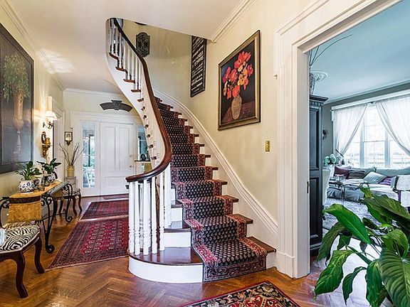Magnificent 1820's Bellevue Hill farmhouse restored in the 1930's by Boston architect, Oscar Thayer. Situated on 16,900 sg fits highlighted by a slate roof, cooper gutters, 2 rebuilt chimneys,stucco exterior & 2 car garage.the 1st floor has a marble vestibule opening to a bridal staircase an expansive hall with herringbone floors, 10 ft ceilings and crown molding. The timeless kitchen has farmhouse sink, s/s appliances, Italian tile & granite counter. Dining room boasts original slate fireplace, bay window and decorative moldings. Living room has fireplace & triple window. Oak library with decorative fireplace and built-ins. The 2nd flr incl 4 generous bedrooms. Master bedroom has front to back cathedral ceilings, 1/2 bath, & sitting area. Ample closet space and huge walk up attic. Minutes to commuter rail and shopping.