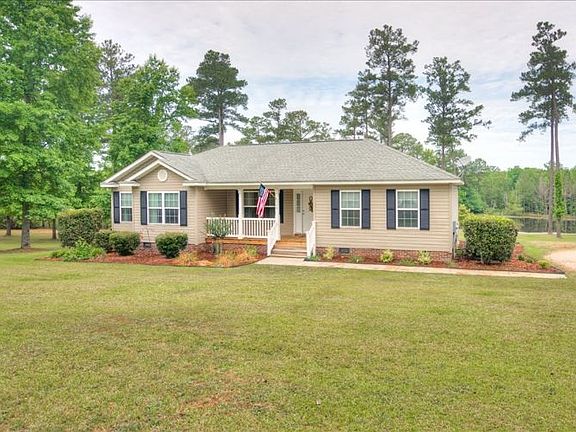 Peace and tranquility will make you fall in love with this rare property on almost 6 acres. This well maintained single story 3 bedroom 2 bath home calls you to relax on the rocking chair front porch. The large eat in kitchen has ample counter space, bar seating, and a separate pantry. With a split bedroom plan for privacy, the large owners suite has a sizable closet and a private bath. Two additional bedrooms are spacious with plenty of closet space. Enjoy fishing or watching wildlife? This home has a large pond that will provide the best of both. The covered back deck overlooks the large yard and pond. Situated on 5.87 acres of mostly cleared land which allows space for a garden, pets, chickens, play space, and entertaining. Located near shopping, Strom Thurmond HS, and Pine Ridge Country Golf Club. Enjoy rural life while being convenient to I-20, Bridgestone, and Generac. Commute to Trenton is approximately 12 minutes, downtown Aiken 35 minutes, and downtown Augusta 45 minutes.
