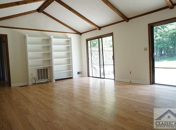 Great 3bd 2 bath ranch on Athens West side! All new interior paint including all cabinets . Brand new Roof by Christian Roofing. 10 year warranty. vaulted ceilings and exposed beams and built in shelves in living room, fireplace, Yes there is even a 70s pit. good conversation piece. nice back deck for entertaining, Fenced in yard. two car carport. Large bedrooms.
