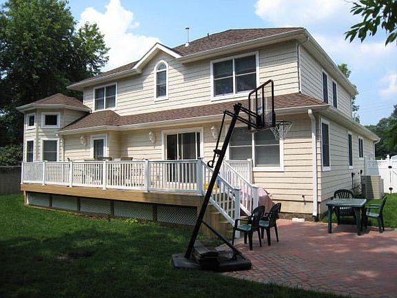 FANTASTIC NEW PRICE! Extraordinary Custom Contemporary with upgrades galore! This large open floor plan home has large/open rooms throughout. Features include Brazilian Cherry hardwood floors, Casablanca Ceiling Fans, gourmet eat-in kitchen with granite counters, walk-in pantry, formal living room, formal dining room, breakfast nook, office with french doors, 2-story entry foyer with wrought iron railing & a retractable chandelier for easy cleaning. The 1st floor master Bedroom suite includes an octogon sitting room, walk-in closet & private back door to back deck. Private master bath has marble flooring, steam shower, Kohler heated/jet soaking tub & granite double sink counter. 2nd floor has four bedrooms that includes a guest bedroom suite with private bath, and a Jack & Jill bath between BR#4 and BR#5. Totally landscaped grounds, fenced-in backyard, storage shed, maintenance free decking with white vinyl railings. 2-zone/gas forced hot air heating and central air. Pull down stairs to attic with plywood flooring for extra storage. Fenced backyard includes an above ground pool.
