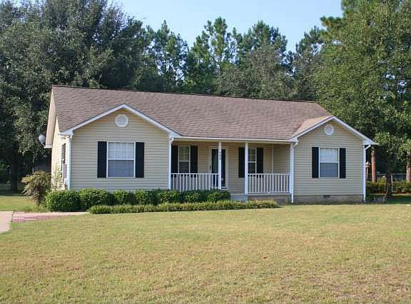 Low maintenance home in the County! This 3BR/2B home features Great Room with vaulted ceiling and built-in bookcases, arched doorways, split bedroom plan, spacious kitchen with abundant cabinet space. Laundry room, screened porch, storage building,large back yard with fenced area for garden, on .6 acres. This comfortabale home is move-in ready.