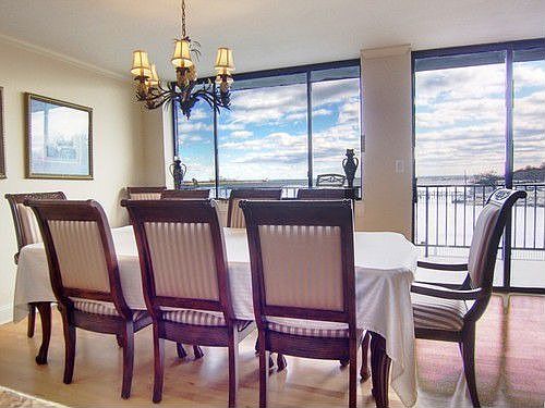 MAGNIFICENT WATER VIEWS OF LONG ISLAND SOUND ,DIRECT WATER FRONT VIEWS FROM EVERY ROOM. This is a special waterfront unit (1400 SF) and is in move-in cond. TOP OF THE LINE RENOVATIONS INCLUDING GRANITE AND MARBLE COUNTER-TOPS, SUB-ZERO REF.WOLF DOUBLE OVENS, WOLF STOVE-TOP,MIELE DW, CUSTOM CABS, CROWN MOLD. Open floor plan, large spacious mstr bdm with full bath, nice sized second bedroom, plenty of storage plus additional building storage space ,also 2 deeded parking spaces. Large 45' terrace to enjoy the evenings with dinner-cocktails, social room on top floor for parties and events, and much more. Walk to the 3 Boat Clubs, local park, or beach, less than a 1mi to FLD Metro Station, every amenity that would be needed is minutes away..