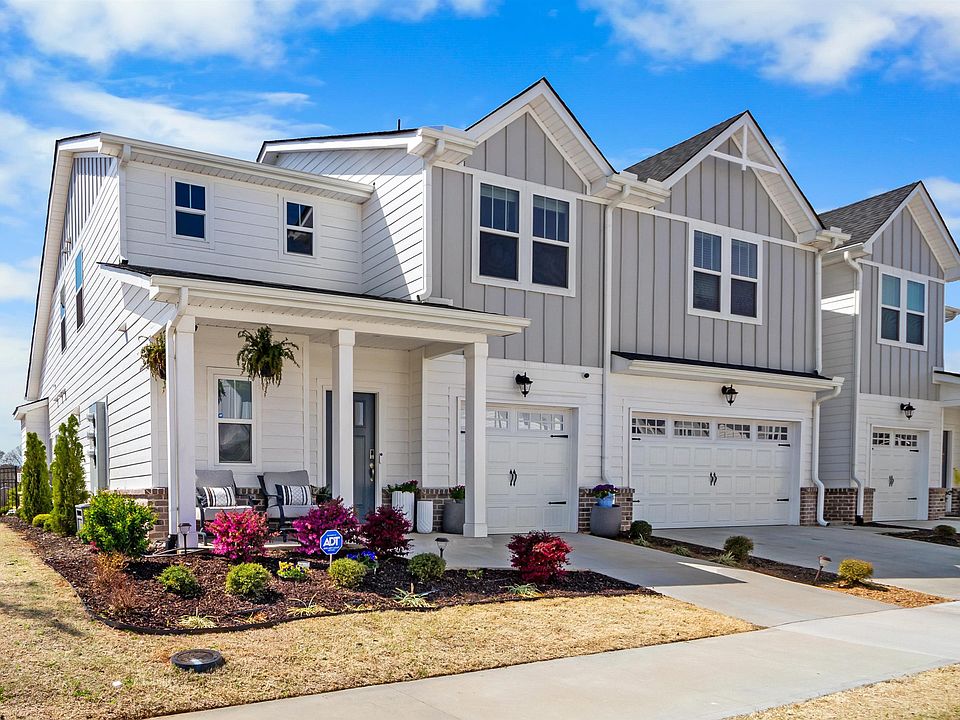 Introducing 155 Bromes Way, nestled within the charming Village of Chapel Green Community. At 1,798 sq feet, this townhome offers 3 bedrooms and 2.5 baths, boasting a spacious bonus living area. The main level showcases the primary owner's suite, complete with a luxurious double sink vanity, elegantly tiled walk-in shower, and a generous walk-in closet. The kitchen embodies modern elegance with sleek cabinets, quartz countertops gracing a sizable island, and a spacious pantry ensuring ample storage. Equipped with stainless steel appliances, it's tailored for your culinary aspirations. The great room invites relaxation with its welcoming fireplace and abundant natural light. Notable conveniences include a washer and dryer and contemporary lighting throughout. Upstairs, discover two additional bedrooms, a full bath, and a versatile bonus living space perfect for an office or cozy TV room. Step outside to the fully fenced backyard, where a beautiful patio awaits, ideal for unwinding while savoring stunning sunsets. Positioned as an end unit, this home enjoys coveted placement in the highly sought-after midtown area of Greenville. Enjoy effortless access to premier shopping, dining, and entertainment, with downtown Greenville, the Swamp Rabbit Trail, and Verdae, Haywood, and Woodruff shopping districts just minutes away. Plus, convenient proximity to highways 85 and 385 ensures seamless connectivity. Welcome home to luxurious living at its finest.