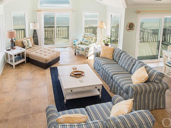 Looking for a great home on an amazing oceanfront lot, this is it.  Located in Carolina Dunes, this 75ft wide x approximately 300 foot deep oceanfront lot has beautiful views of the ocean and the beach.  Located in one of the most sought after areas of the OBX, the lots are large and the elevation is high.  There aren't many oceanfront homes where you can actually see folks enjoying the beach from the house.  Six bedrooms and all on on the 2nd or 3rd floor.  All rooms enjoy plenty of natural light and 4 with direct access to the covered or sun deck, hot tub and magnificent views of the ocean.  The owners have constantly updated this home.  Within the past 5 years, the siding has been replaced with vinyl shakes rated at 200mph, all new trek decking with vinyl white vinyl railings.  Inside, they have added white shiplap ceilings to many of the rooms, upgraded the flooring with LVP and remolded all 4 baths with flooring, 3 tile showers, all new vanities and fixtures.  Many windows and doors have also been replaced to new higher quality glass.  Enjoy sitting on the polywood furniture on the sun decks or relaxing in the new hot tub on the covered deck while watching the happiness on the beach.  You can move right in as this one has been lovingly cared for and maintained.  You don't want to miss this one.  If location is everything for you, you should see this one today!