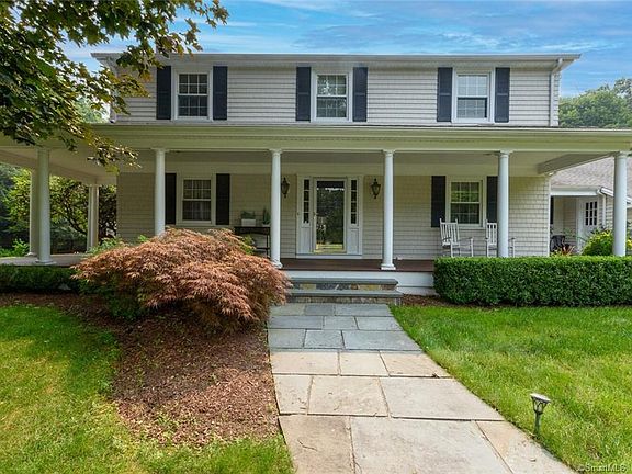 This is the one you've been waiting for Ideally located in lower Greenfield Hill, set down a circular drive, sits this gem of a home, perched perfectly on its 2.20 parklike level acres. A welcoming front porch beckons as you approach and a floorplan featuring both the coveted private nooks, as well as generous open spaces, greets you once inside the front door. The stunning eat in kitchen offers an impressive professional suite of appliances, sizable island and a breakfast room overlooking the grounds - it truly is the heart of the home Formal dining room, living room with fireplace and sun drenched family room/sun room provide all the additional spaces desired for today's home/work life balance. Mudroom, laundry & full bath complete the main level. The second floor features the master suite and 3 additional bedrooms. Unfinished (and large lower level is just waiting to be transformed into amazing playroom, gym or home office. Outdoor entertaining is easy on the expansive back patio, accessed via both the kitchen and sunroom, which spills into the private back yard - pool, tennis court or party barn are all options here This lower Greenfield Hill location is minutes from award-winning schools, shopping, and dining nearby, conveniently located just 55 miles from NYC. Nothing to do but move in and enjoy