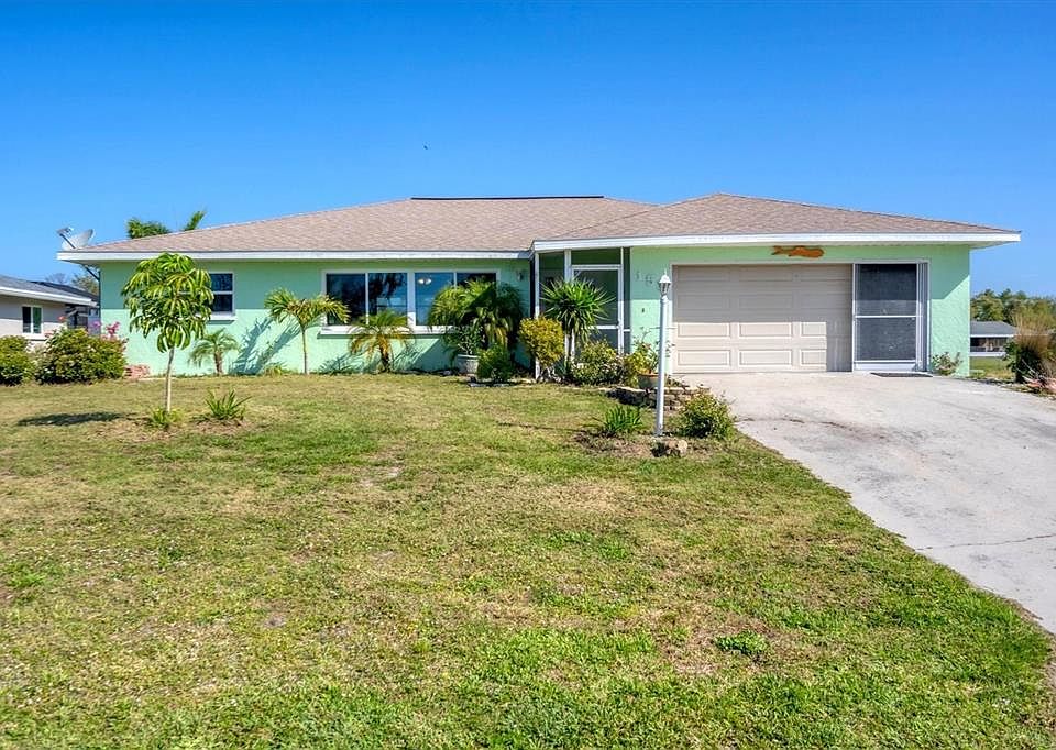 Great opportunity to buy in this well established community of Rotonda West. 2 large bedrooms, 2 full baths with an oversized 2 car garage. This home is being offered AS-IS. Home suffered some damages in Hurricane Ian and repairs were not fully completed. With a little tlc this home can be back in great shape. Several new items completed in 2023 were roof, AC, pool cage and 9 windows. In 2021 the electrical panel was changed out. New carpet in the 2 bedrooms, new laminate flooring in the last couple years and kitchen has newer cabinets and granite countertops. Open the back slider to an oversized lanai with 2 ceiling fans and an oversized pool and pool deck. The pool pump is brand new and has a 3 year warranty. The dock out back needs a little repair work but once that's done it would make for a great place to sit and throw out a fishing rod. The 2 bathrooms need a little work but for the most part the plumbing fixtures just need to be installed. Just minutes to 5 Rotonda golf courses, world class fishing and amazing beaches. This is it if you're looking for the affordable pool home. Don't delay. Call for your private showing today.