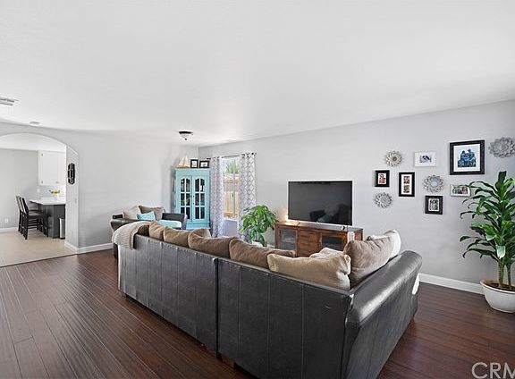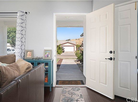 Modern Kitchen. This tastefully updated 1596 +/- square foot home features three bedrooms, two bathrooms, spacious office and a two car garage on a 7015 +/- square foot lot. The home opens onto the spacious floorpan with beautiful Bamboo flooring throughout and a modern kitchen with crisp, white cabinetry and solid surface countertops. Master Bedroom opens to backyard patio and a spacious lot. All of this situated in a convenient friendly neighborhood with excellent schools and only 20 +/- minutes from marvelous Paso Robles.