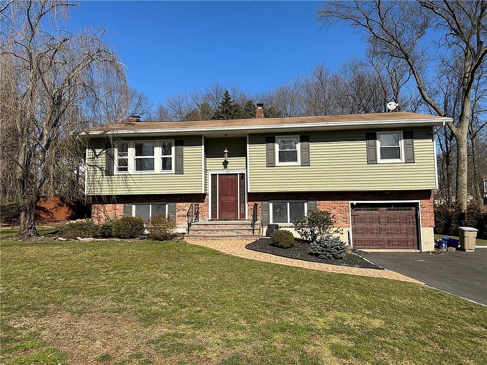 Welcome to this well-maintained expanded bi-level residence in a desirable cul-de-sac setting. 15 miles to NYC, making an easy NYC commute. The spacious kitchen has new cabinets, granite counters, Bosch super quiet dishwasher, a beverage/wine cooler and stainless appliances. The main level extends to an L-shaped living and dining room area, providing ample space for relaxation and gatherings. A primary suite, complete with an ensuite bath featuring a tiled shower, two additional bedrooms and a hall bathroom, complete the upper level. Sliding doors off the eat-in kitchen lead to a balcony and stairs descending to a paver patio, ideal for al fresco dining. The lower level provides two additional bedrooms, offering flexibility for guests or home office space. An expansive family room features a brick fireplace, perfect for cozy evenings in. An additional room leads to the laundry facilities and a one-car garage, ensuring convenience and organization. Sliding doors open to a two-level paver patio, extending the living space outdoors and providing a tranquil setting for entertaining or just quiet leisure time. This home seamlessly blends modern upgrades ie recessed lighting on main level) with functional design, offering a harmonious balance of comfort and style. Come make this your home! Additional Information: ParkingFeatures:1 Car Attached,