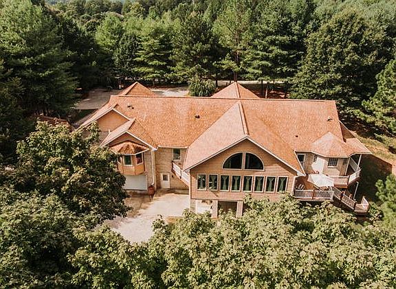 **ABSOLUTELY STUNNING** 5 bed 3 bath with over 6000 square feet sitting on roughly 4 acres of seclusion. Neighbors won't be an issue with this property. Located only two miles from Lee's Ford Marina and a mile from Fishing Creek Boat Ramp. This home has three bedrooms upstairs and two bedrooms downstairs with an additional kitchen and laundry room in the basement. The Antique Lead Glass Doors in the basement came from a church in Lexington in the 70's. All Pella windows and doors with TREX decking. New hot water heater and two HVAC units. Hottub in the sunroom. Hardwood and tile throughout the whole house. This is truly a MUST SEE!!