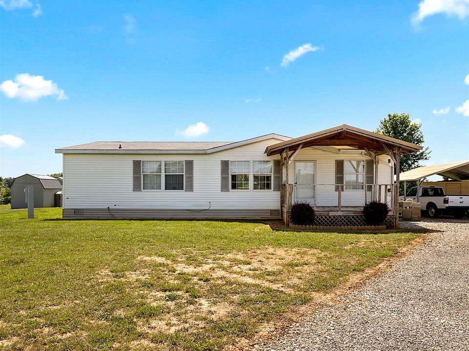 Cozy 3 bedroom, 2 bath home in a country setting! Built in 2003 this home rests on over an acre and includes a carport and storage shed. The home is sold with most of the furnishings. Central heat/air. Covered front porch. Covered back porch. And plenty of garden space!
