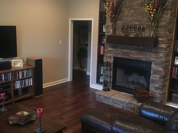 Charming custom built 3/2 home with an open floor plan.. This home boasts of hardwood flooring throughout w/stained concrete in the wet areas; great room w/picture windows and a stacked stone wb fp framed w/built-in shelving; abundant cabinetry in the kitchen complete w/granite countertops, gas stove, ss appliances, breakfast bar & pantry; master bath w/jet tub, separate shower w/ Travertine tile surround, granite countertops & his & hers closets; dining room & upstairs bonus room. Back porch w/fire pit!