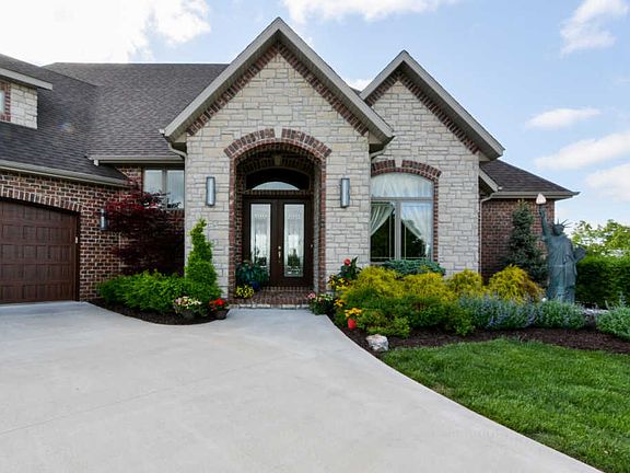 MODERN TRADITIONAL ELEGANCE - 10+ Acres, Breathtaking Views From Every Room! Located in desirable, gated community of Hickory Ridge Estates. BRANSON Schools. Upgraded custom finishes throughout. Unique Features, Thoughtful Design, Exquisite Decor. 8299 sq ft on 4 levels, 4 Fireplaces, 2 Kitchens, 3 Dining spaces, (High End Dining Set on main level is included.) Master Suite with Sitting Room on main level, Second Master Suite upstairs, 3 additional bedrooms on lower level, 6 Baths, 2 Laundries, Theater Room. 3 Car Attached Garage, 4th Garage on lower level is 54'x14', 75' Pull Through RV Garage, Massive Shop with Office, 3 Large Easy Care Trex Decks with Water and Propane Service, Largest Private Deck has Hot Tub for 11, half bath, and storage.