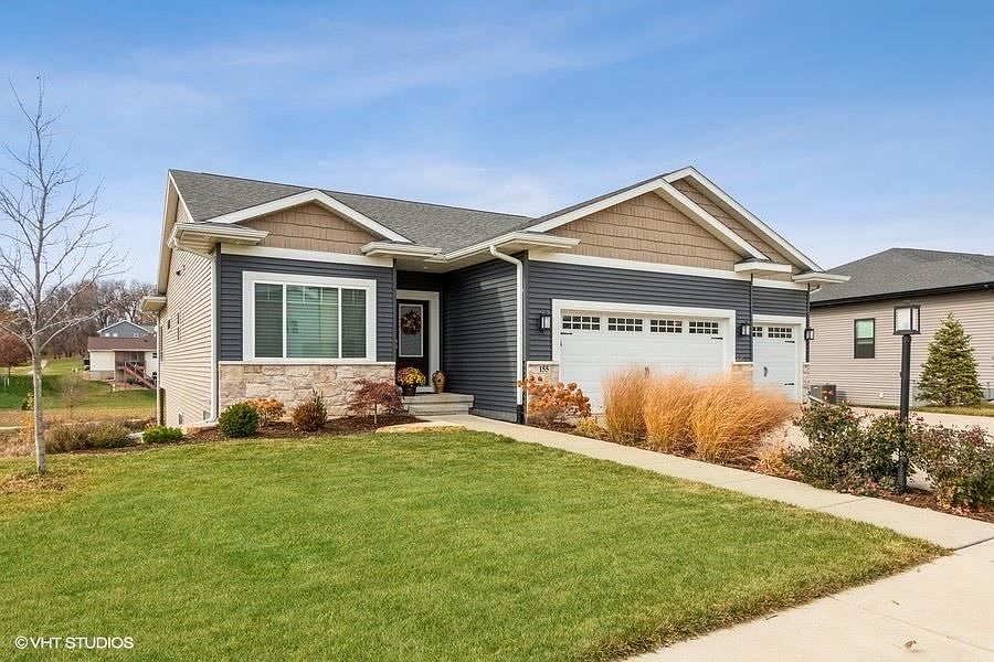 ATTENTION VETS! This home has an assumable VA loan for qualified prospects! Like new East Iowa City walkout ranch with an open floor plan and a 3 car garage! Main level great room has a gas fireplace & trey ceiling. The kitchen features a center island and opens to the dining area & 4 seasons room. White kitchen cabinets & stainless appliances with a gas stove. Solid surface counters. Hardwood floors. Mudroom off the garage with lockers and main level W&D that leads to the primary bedroom. W&D stay. The huge primary bedroom has dual vanities, a walk in shower & large walk in closet. The lower level has two good sized bedrooms, 3rd bathroom, a large family room that walks out to a level back yard with incredible views of the walking paths of the Lindemann Subdivision. Irrigation system. Tons of storage space!
