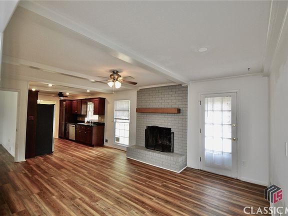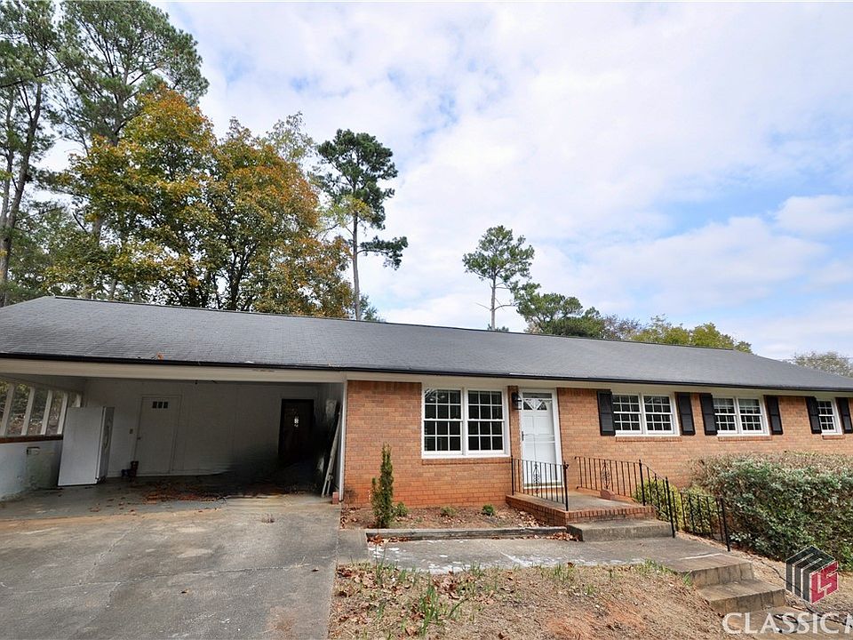 This remarkable brick ranch is conveniently stationed in the HOA-free Holiday Estates neighborhood located less than a mile and a half from shopping, dining, and Loop-10 access. Just inside the front door is a large living room with trendy and durable LVP flooring and natural light from the front windows. In the back of the house is a spacious kitchen with a pantry that includes custom drawers and black appliance package connected to a cozy dining room with an fireplace and room for a large table to gather around for family meals. Beyond the kitchen is a convenient mud room off the carport for storage and access to the laundry closet tucked away from guests view. Down a hall on the right side of the house are all four of the bedrooms, each with newer, clean carpet and a ceiling fan. The primary bedroom in the back boasts its own private bathroom. The peaceful backyard is fenced in and offers a storage shed for any lawn care and gardening needs. Brand new roof to be installed before closing!