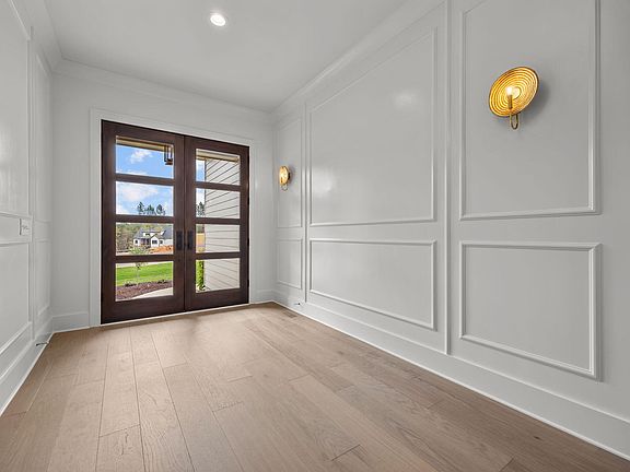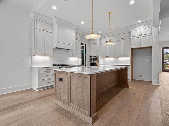 Stone surround fireplaceTile surround fireplaceCustom painted ceiling-height cabinetryDesigner chandelierUpgraded lightingHuge walk in pantryWet bar