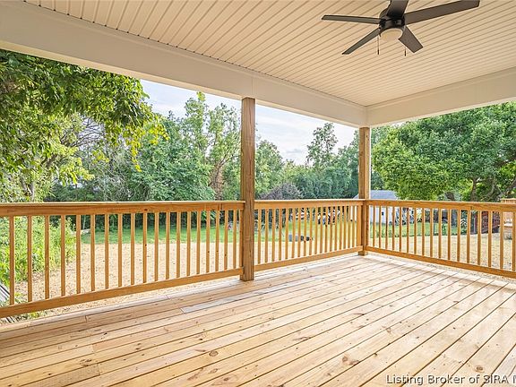 bedrooms, living room, covered porch, and deck ceilings all have ceiling fans. This all electric, outside maintenance free