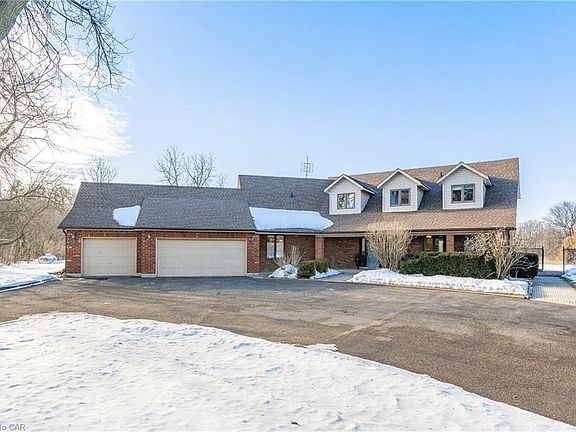 Country living just minutes from the city! This two-acre property offers the potential for severance and for an in-law conversion. Overlooking a creek and pond, the property backs onto GRCA protected greenspace with the opportunity to sever a .74 acre lot. Boasting over 5000 square feet, five bedrooms - including a main floor primary suite - and ample natural light-filled principal rooms with an 1800 sq ft basement. The carpet-free main level features a spacious living room with a fireplace and built-in bar overlooking a beautiful kitchen with a large island with breakfast bar, built-in appliances, and stone backsplash. Next to the kitchen, a formal dining room, laundry with walk-out and powder room occupy one side of the home while the primary suite with sliders to the patio, walk-in closet, and four-piece ensuite occupy the opposite side. Four additional bedrooms, a four-piece bath, and storage space are located on the second floor. The versatile basement, currently set up as a rec area offers room for entertainment, exercise and games spaces, a powder room, and utility and storage spaces can be converted into a walk-up in-law suite. The 740 sq ft triple garage can be accessed off the front porch and offers direct walk-out to the backyard. In the backyard a patio spans the back of the home, with a pergola providing an inviting outdoor dining area, an inground pool, sprawling lawns overlooking the creek, and treed landscape. Updates include new broadloom and fresh paint (2021); kitchen, exterior doors, rear windows, pump and iron filter (2017); pool liner (2016), heater (2008) and cover (2006); driveway (2007); flat area of roof (2020); tankless water heater (2014); central air (2019). Located just minutes to amenities, HW 401 access and the Region of Waterloo Airport.