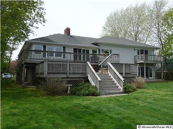 BEST BUY ON THE RIVERFRONT! Set on .89 acres this 3400 S.F. home is DESIGNED FOR THE LARGE OR EXTENDED FAMILY. Set back from the road for privacy, four decks looking out on the river, a dock with bubbler extending over 100' into the river, modern kitchen w/center island breakfast bar w/granite countertops looking out to the water, detached 24' x 22' detached garage with 8' x 8' doors and storage loft and the list goes on.