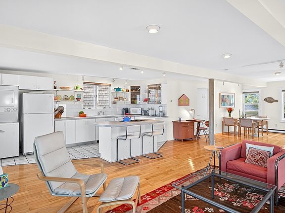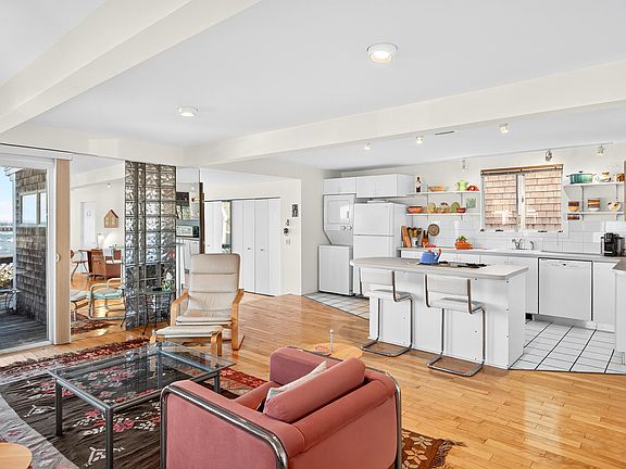In Provincetown's desirable West End, this upper-level waterfront residence is a special offering with remarkable views of the harbor and Long Point. The open plan creates a sense of volume rarely found in one-bedroom homes, with the living, dining, and kitchen areas flowing together seamlessly. Two sets of glass doors open to a 240+ square foot deck with southern exposure--ideal for mornings in the sun or gatherings by the water. Hardwood flooring runs throughout, while multiple closets--including a walk-in--provide excellent storage. The kitchen offers abundant cabinetry and counter space along with in-unit laundry. The bath includes a large soaking tub, enhancing comfort. Additional features include a deeded parking space, pet-friendly living for owners, and 30-day or longer rental terms. The West End location places you close to shops, restaurants, coffee houses, and galleries. This home balances everyday ease with a setting that invites both relaxation and entertaining by the water.