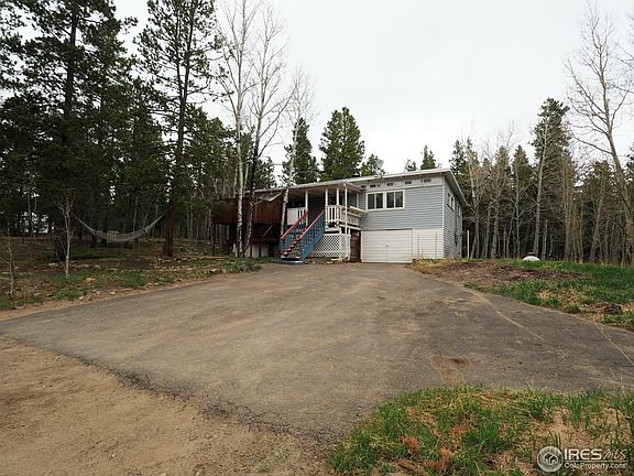 Sunny 2 bed 1 bath home sits on 1.10 acres that backs to National Forest for hiking and biking right out your back door. Open floor plan with laundry room and has a short ceiling basement. You can get a short car into it to use as a garage. Pellet stove in living room. Sit on you covered porch and watch the wild life. Septic has been inspected and will have the Gilpin County Use Permit soon. Domestic well so you can have a garden.