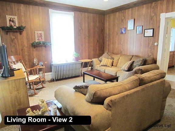 Nice 4 Bedroom, 2.5 Bath vinyl sided 2 story on a corner lot with wrap-around enclosed porch. Main floor has a Living Room w/crown molding, Oak Eat-in Kitchen w/new laminate flooring & French doors, Bedroom, Bath, Laundry/Powder Room, and a Mudroom. Pantry area in Kitchen-gas stove, refrigerator, & portable dishwasher included. 2nd Floor has 3 nice size Bedrooms and an updated Bath w/ceramic tile floor & jetted tub. Off street concrete parking in front fits 2 cars. Relax on the rear Deck. Fenced yard. Walk-up attic provides great storage.