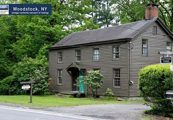 A perfect country cape in a sweet location! Surrounded by mature plantings and lush lawns, this is the place to relax and regroup. The open plan kitchen and dining areas feature wood cabinets, butcher block counters and stainless appliances. Gaze out the big picture window at the beautiful woods and mountain views. The generously proportioned, many windowed living room with brick fireplace is crowned with a beamed ceiling. There is a ground floor bedroom, with an updated half bath and laundry room off the kitchen. This could easily become a full bath. The second floor bedrooms include a vaulted and beamed master, and share a nicely renovated bathroom with tub and shower combo. The charming wood and stone two car garage could also be a great studio space. This wonderful home has been lovingly maintained and upgraded, including new windows, newer roof, paved driveway and more. This location off of a quiet country road offers easy access to Woodstock, Phoenicia, skiing, hiking, fine dining and shopping, all with a great sense of privacy. Not another house in sight!
