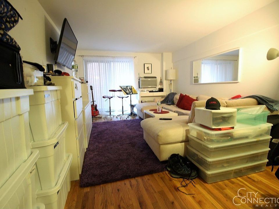 PICTURES OF THE ACTUAL APARTMENT Huge studio with sleep loft or storage space, pass through kitchen with dishwasher, refinished hardwood floors and great closet space. The building is a prewar elevator midrise that used to be a Piano Factory and was converted into very large and lofty apartments. There is laundry, video intercom security and a live-in super. For more information please contact Allison Block with City Connections at No broker inquiries please