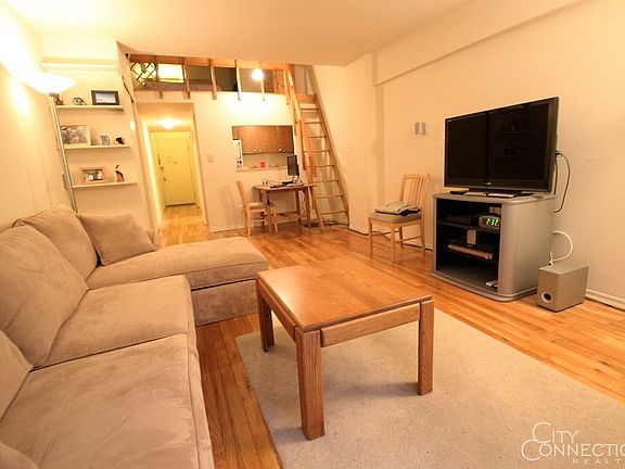 AVAILABLE FOR APRIL 1 MOVE IN PICTURES OF THE ACTUAL APARTMENT Huge studio with sleep loft or storage space, pass through kitchen with dishwasher, refinished hardwood floors and great closet space. The building is a prewar elevator midrise that used to be a Piano Factory and was converted into very large and lofty apartments. There is laundry, video intercom security and a live-in super. For more information please contact Allison Block with City Connections at No broker inquiries please