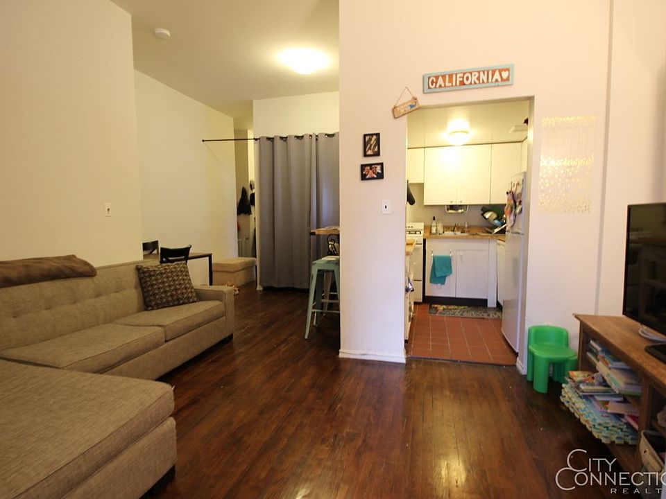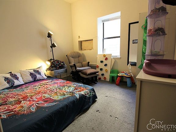 PICTURES OF THE ACTUAL APARTMENT Already converted 2 bedroom. Both bedrooms are large and there is still a good sized living room with dining area after the conversion. Can be rented as is or the wall can be taken down and restored to it's original layout as a huge 1 bedroom with dining area, wood burning fireplace, very high ceilings, hardwood floors throughout and great closet/storage space. The building is a prewar elevator midrise that used to be a Piano Factory and was converted into very large and lofty apartments. There is laundry, video intercom security and a live-in super. For more information please email Allison Block with City Connections at No broker inquiries please