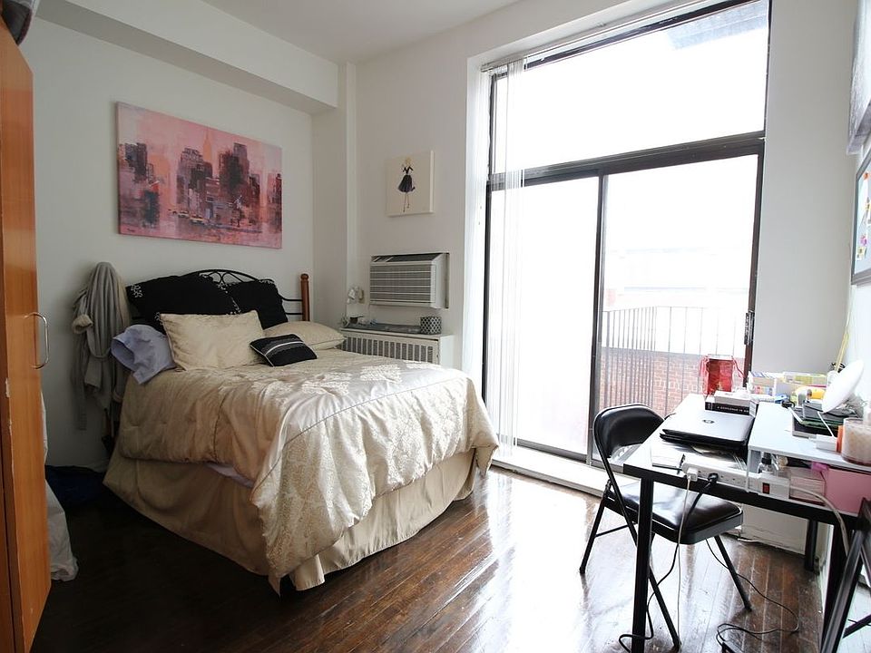 NO FEE TO DIRECT RENTERS Enormous, 2 huge bedrooms each with it's own balcony, a large living room with dining area, recently renovated pass thru kitchen with dishwasher, very high ceilings, hardwood floors and great closet/storage space. The building is a prewar elevator midrise with laundry, video security and a live-in super. Sorry, no dogs allowed but cats are welcome.
